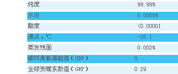 保賜利R-134a雪種料液來(lái)源ICI,系出名門(mén),優(yōu)良的品質(zhì)會(huì)保證你放心的度過(guò)每一個(gè)炎熱的夏天,質(zhì)量指標(biāo)如下:
